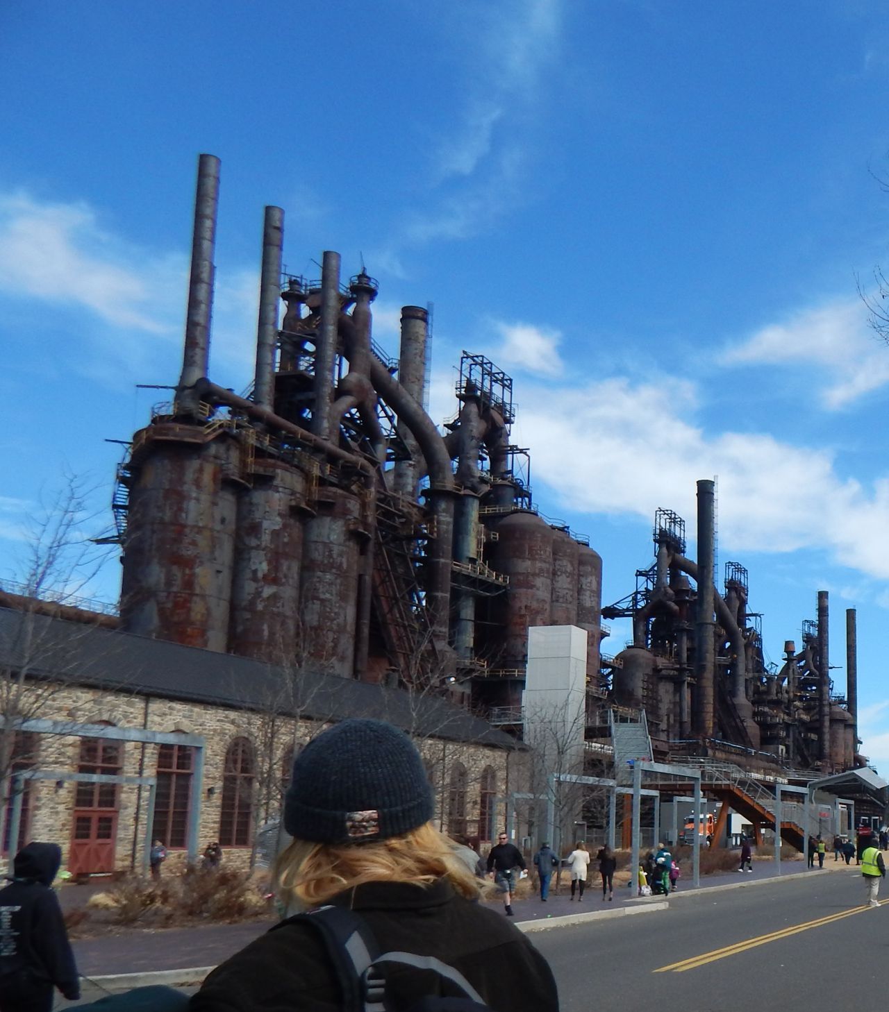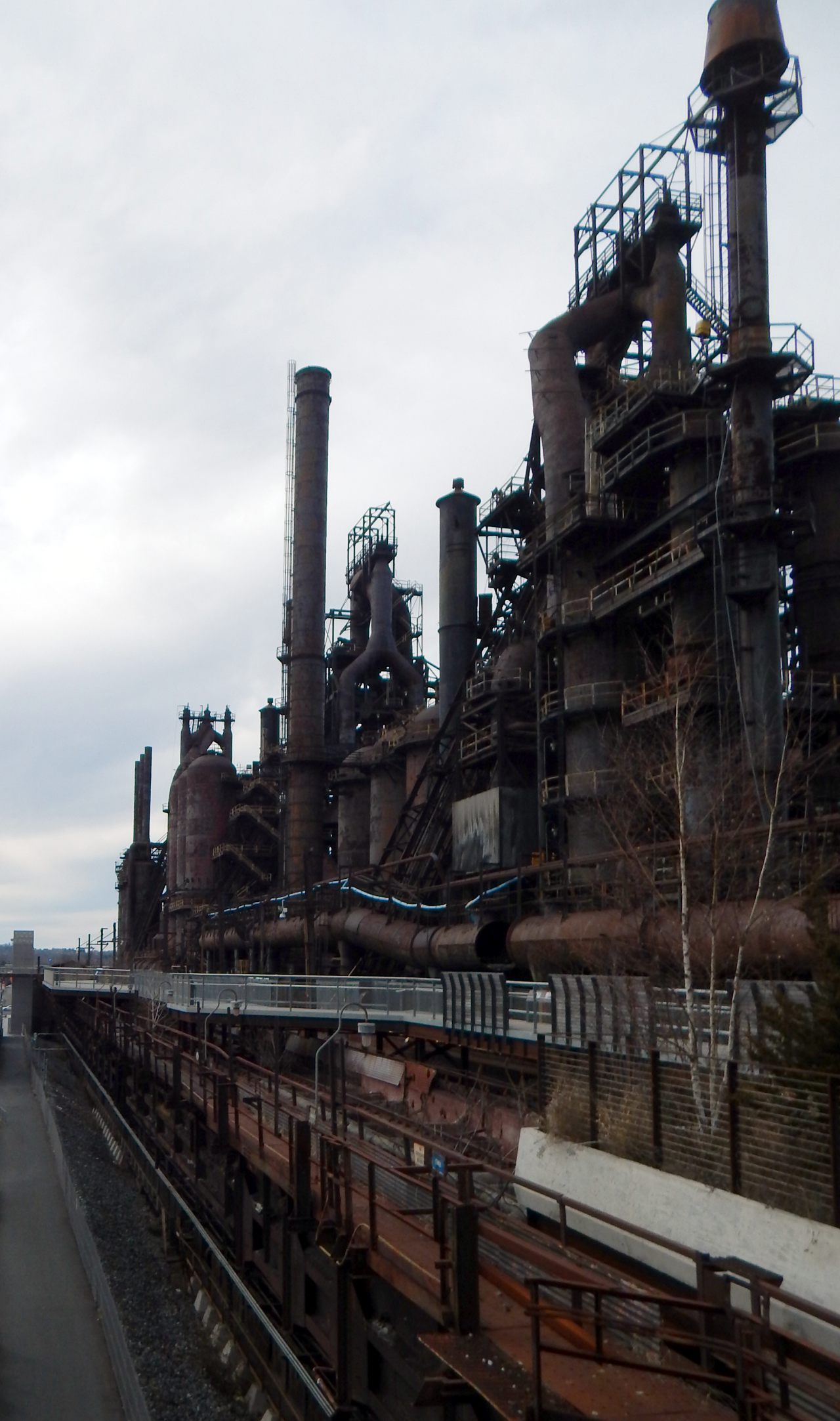 They won't really put it that way. They do mention the huge number of Liberty Ships (which were used to supply war-torn Britain from 1941 onwards) that Bethlehem Steel produced: one per day. The plaque for the quenching shop shows a gigantic battleship gun, still red hot, being dipped in mineral oil. The steel processing shop is in charge of the the turret. Yet another part responsible for the hull plating. Business as usual for a factory created to help rebuild the US Navy after the civil war. Sure, they do mention some famous buildings that were made with Bethlehem-sourced steel, such as the Golden Gate bridge and the Rockefeller Center, but it seems like for civilian steel Bethlehem never quite managed to compete with Andrew Carnegie and J.P. Morgan's US Steel colossus. Apocryphal story: the plant's upper management is on a golf course when a news boy comes to announce the breaking out of the Great War. One of the men responds: "gentlemen, we're going to be rich".