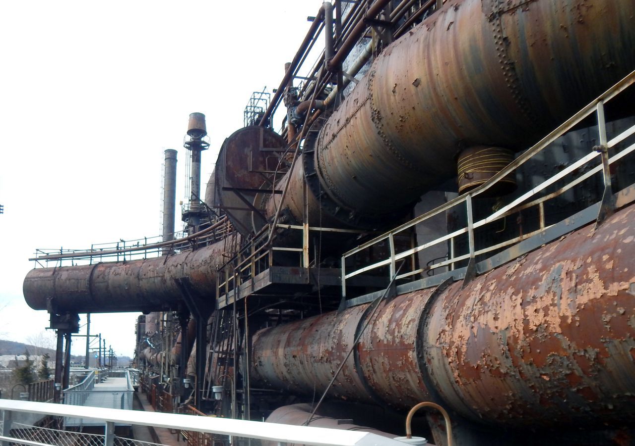This foundry, like the concrete town from ealier, is from that Progressive Era that I don't completely understand. 1901, J.P. Morgan consolidates Carnegie Steel with most of the northeast's steel industry and creates U.S. Steel, blowing the previous record for largest corporation in the known universe to absolute smithereens, the first company with a billion dollar market capitalization. 1911, Standard Oil lost an anti-trust lawsuit, is forced to split up. Same year, U.S. Steel wins its own antitrust lawsuit. J.P. Morgan would keep having fun taking over the banking and railway sectors.